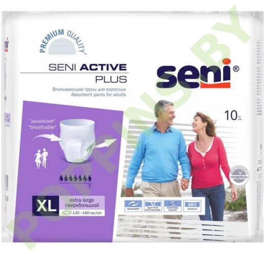 Впитывающие трусы Seni Active Plus для защиты при тяжелой степени инконтиненции (недержании мочи). Оптимальное решение для тех, кто ведет активный образ жизни. Имеют повышенную впитываемость.Трусы удобны в применении, их можно одевать и снимать, как обычное белье.